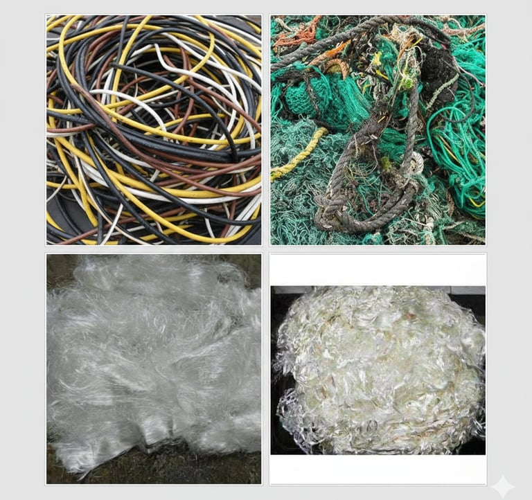 • Forms Available: Industrial rope waste, mesh netting scrap, and soft filament clusters.